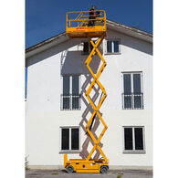 220 V oder Batterieantrieb, in voller Arbeitshöhe fahrbar, ausrollbares Zusatzdeck, nicht markierende Reifen