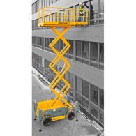 220 V oder Batterieantrieb, in voller Arbeitshöhe fahrbar, ausrollbares Zusatzdeck, nicht markierende Reifen
