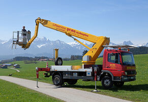Wir verleihen Teleskop- und Gelenkbühnen bis 30m Arbeitshöhe, auf Hänger oder selbsfahren und leicht zu bedienen. Eine Lierferung im Raum Füssen, Marktoberdorf, Schongau, Pfonten oder Nesselwang ist problemlos möglich.
